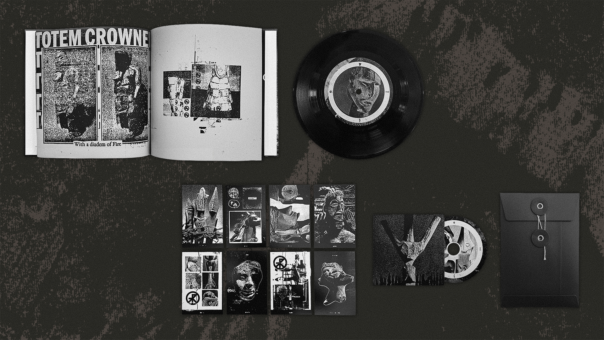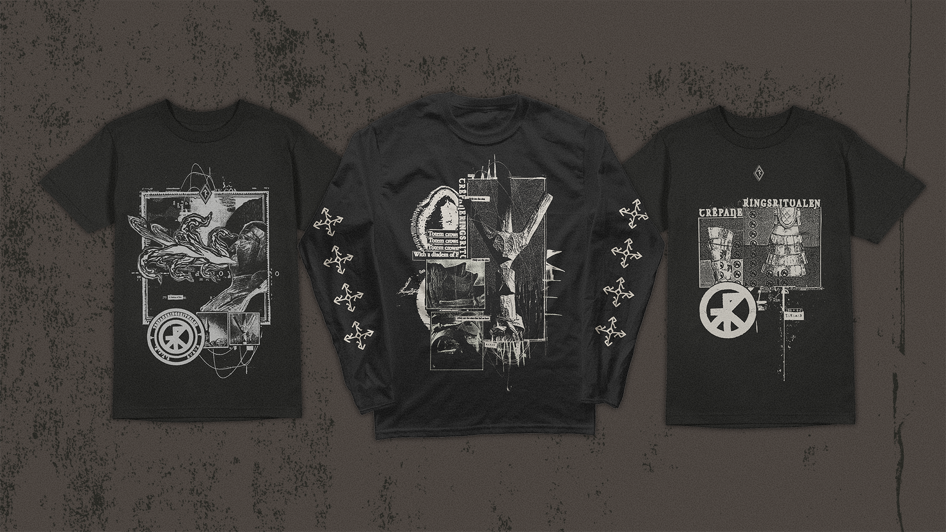48 page book housing a black vinyl 7", a 3" CD in a black envelope with 8 postcards, one long sleeve shirt, and two t-shirts, and music video for Swedish/Dutch Industrial band Trepaneringsritualen. Released by Ant-zen, Raubbau, and Götiskt Förbund.